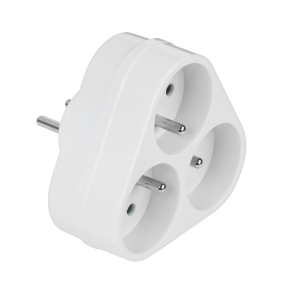 Rozgałęziacz jest wyposażony w jedno gniazdo wejściowe oraz trzy gniazda wyjściowe, co pozwala na rozdzielenie jednego źródła zasilania na trzy urządzenia. Jest przystosowany do napięcia AC 230-250 V oraz częstotliwości 50 Hz, co czyni go uniwersalnym rozwiązaniem do standardowych instalacji elektrycznych.