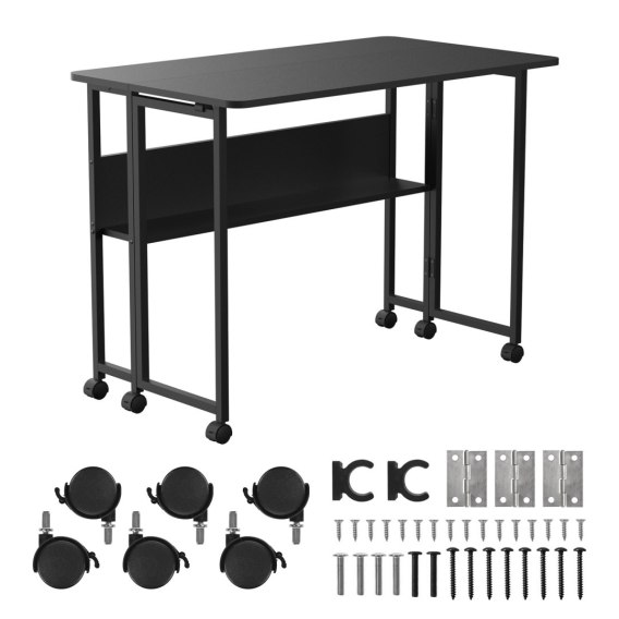 Przemyślana konstrukcja pozwala w kilku prostych krokach zmienić biurko pełnowymiarowe w kompaktowy mebel zajmujący niewiele miejsca. Dzięki sześciu kółkom z blokadą można łatwo przesuwać biurko w dowolne miejsce, a po zatrzymaniu unieruchomić je w wybranej pozycji.
