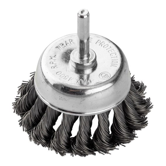 Szczotka druciana doczołowa 75 mm, drut skręcony, stalowy, z trzpieniem 6 mm