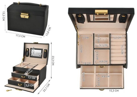 POJEMNY? dzięki 20 różnym przegródkom i wgłębieniom, kuferek pomoże perfekcyjnie zapanować nad porządkiem w kolekcji biżuterii.