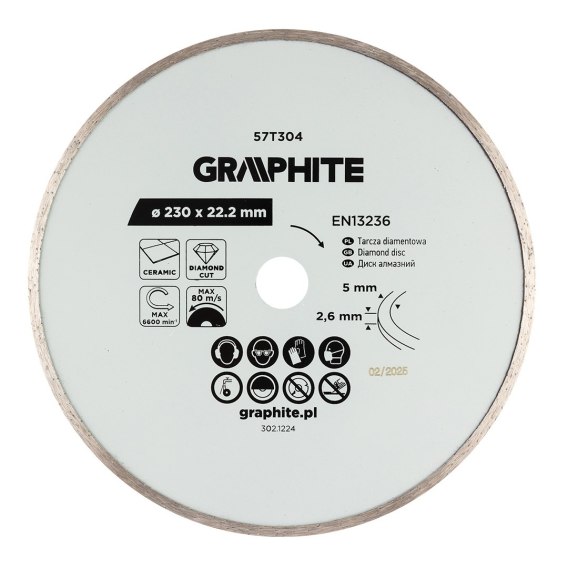 Tarcza diamentowa do cięcia pełna, 230 x 22.2 mm, na mokro