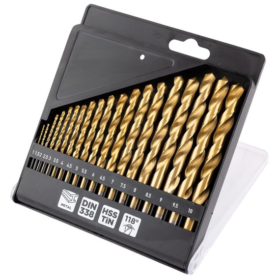 Wiertła do metalu HSS TiN, 1 - 10 mm, zestaw 19 szt.