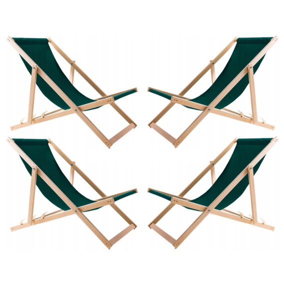 Zestaw zawiera- Zestaw 4 leżaków, zielone, złożone Woodok