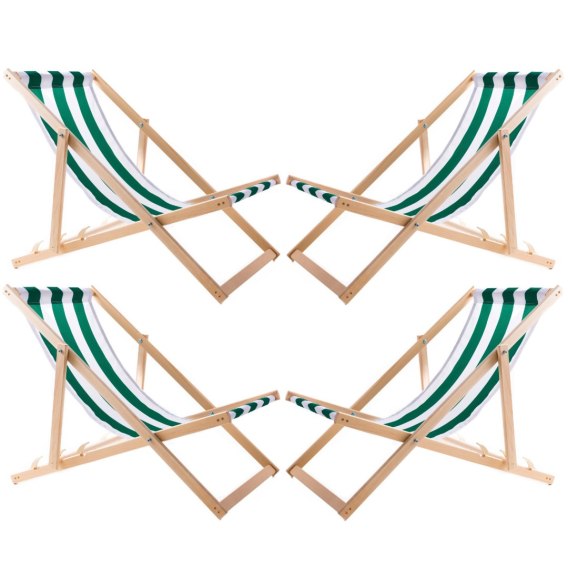 Zestaw czterech leżaków zielony pas, Woodok, zmontowany