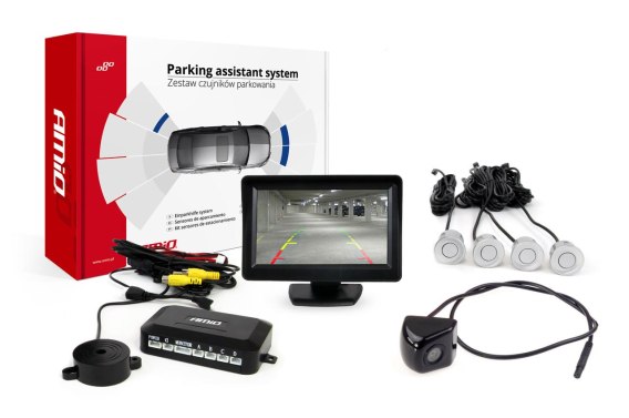Asystent parkowania kompletny zestaw czujniki + kamera z wyświetlaczem. W skład zestawu wchodzi : wyświetlacz czujniki kamera centralka kompletne okablowanie Kamera i czujniki załączają się automatycznie w momencie wrzucenia biegu wstecznego. Czujnik parkowania stanowi niezastąpioną pomoc zarówno podczas jazdy jak i w czasie parkowania. Tylne sensory ułatwiają parkowanie nawet dużym samochodem, a wejście na kamerę cofania umożliwia nam dokładną obserwację strefy za pojazdem. Czujnik posiada wbudowany mikser wideo dzięki czemu może wyświetlać obraz z podłączonej kamery cofania i wygenerowany cyfrowo wskaźnik odległości. Urządzenie szczególnie przydatne jest na zatłoczonych parkingach, podczas opadów deszczu czy śniegu i przy ograniczonej widoczności np. w nocy. Określając nam odległość i kierunek od przeszkody możemy uniknąć niepotrzebnych wydatków i wielu nieprzyjemności spowodowanymi już najmniejszymi otarciami zderzaka. Skład zestawu: 4- sensorowa centralka-LCD, 4 czujki srebrne, bardzo wydajny głośnik kamera cofania CAM-310 wyświetlacz TFT 4,3 calowy dużej rozdzielczości, otwornica do wywiercenia otworów w zderzaku. Wyświetlacz doskonale pokazuje obraz przestrzeni znajdującej się bezpośrednio za pojazdem. Czujnik parkowania jest urządzeniem wspomagającym parkowanie i cofanie samochodu. Działa na zasadzie sonaru - emituje fale ultradźwiękowe, które po odbiciu od przeszkody pozwalają stwierdzić, jaka odległość dzieli samochód od przeszkody. W czasie cofania urządzenie poprawnie rozpoznaje przeszkody znajdujące się na drodze pojazdu i ostrzega kierowcę sygnalizując dźwiękiem (odpowiedni do odległości od przeszkody) lub za pomocą wyświetlacza LED. Pełna specyfikacja: Rozdzielczość 480 x 234 Kamera CAM-310 Alarm dźwiękowy Zasięg/czułość działania 0-2,5m Częstotliwość pracy 40KHz Temperatura pracy -30C +70C Średnica montażowa 22mm