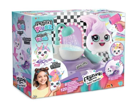 Z zestawem Projekt Plusz Fryzurki możesz dekorować, stylizować i odświeżać wygląd swojego pluszaka bez końca. To proste przyklej jeden z dołączonych szablonów i użyj elektronicznego aerografu w kształcie suszarki do włosów, by nanieść kolorowe wzory. A kiedy przyjdzie czas na zmianę stylizacji? Po prostu wypierz pluszaka i zacznij zabawę od nowa!